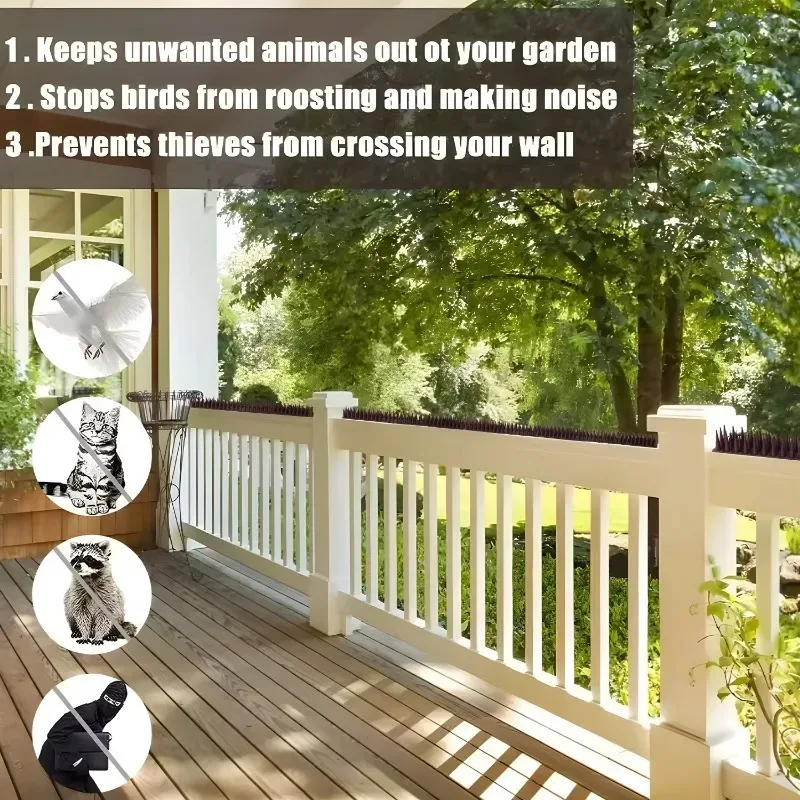 Protect your outdoor spaces with these effective plastic anti-bird spikes. Designed to deter birds and cats from landing on your balcony, eaves, or windowsills, these spikes are a practical solution for keeping your area clean and free from unwanted visitors.