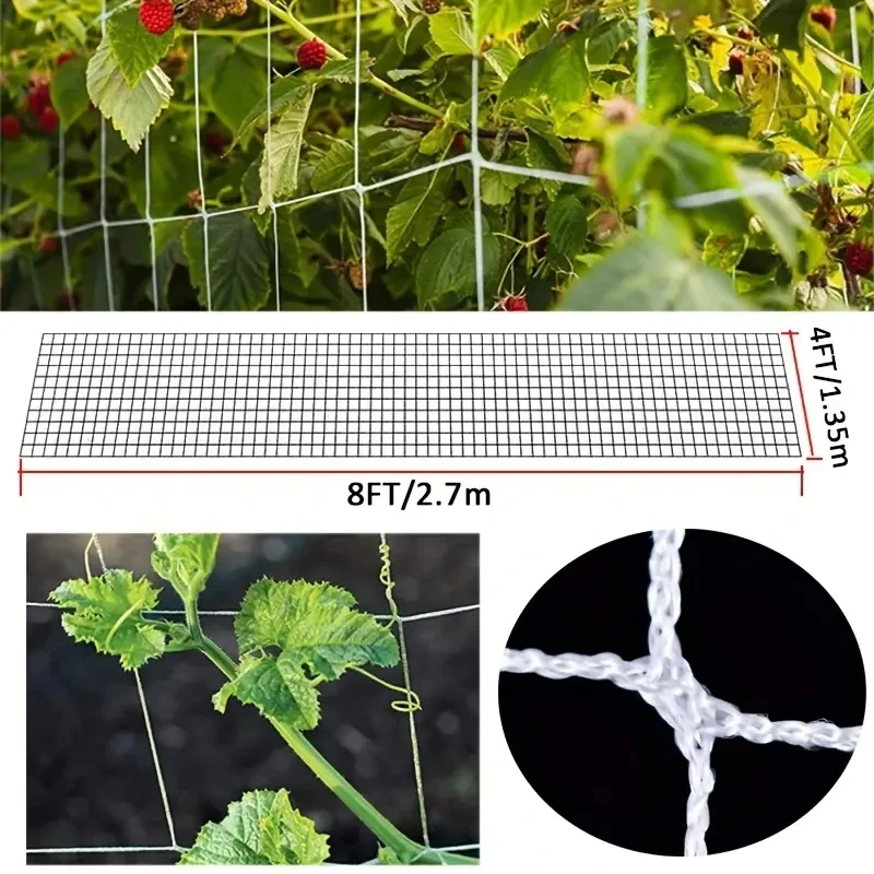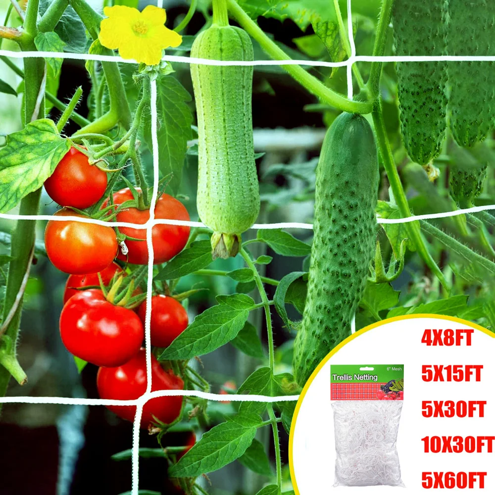 This heavy-duty nylon garden trellis netting is designed for supporting climbing plants such as cucumbers, tomatoes, and various fruits and vegetables. It provides a reliable structure for your plants to grow and thrive.