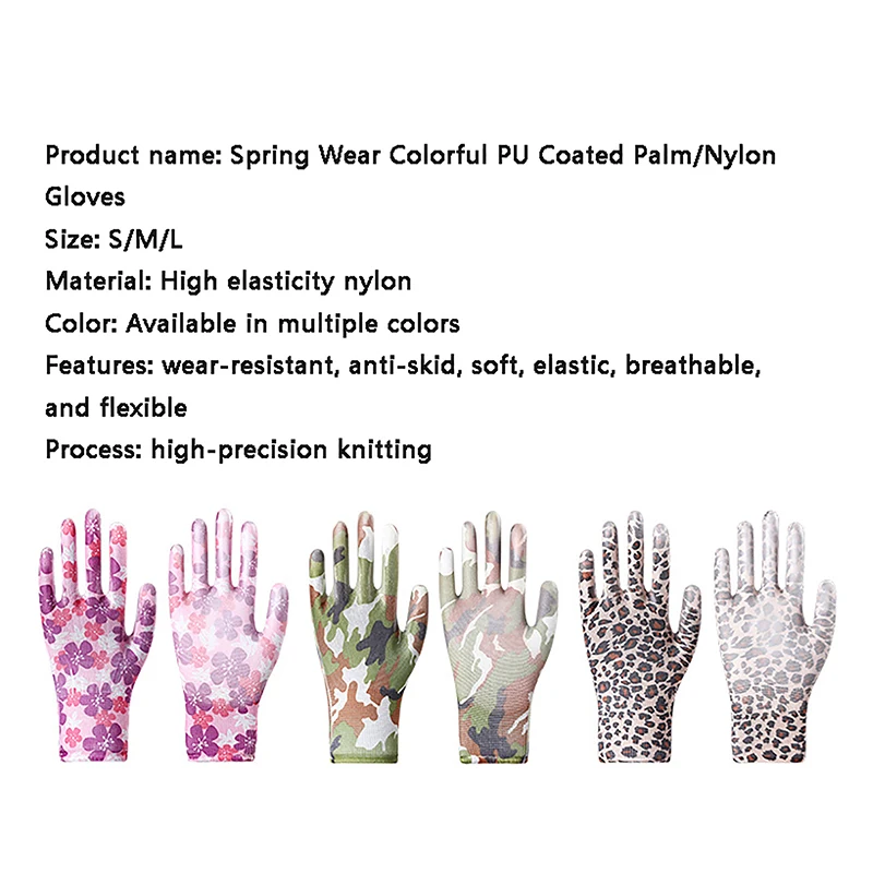 These gloves are designed for various household chores and gardening tasks. They feature a palm-coated design that provides excellent grip and protection while being comfortable to wear. The gloves are made with high elastic nylon, ensuring flexibility and breathability during use.