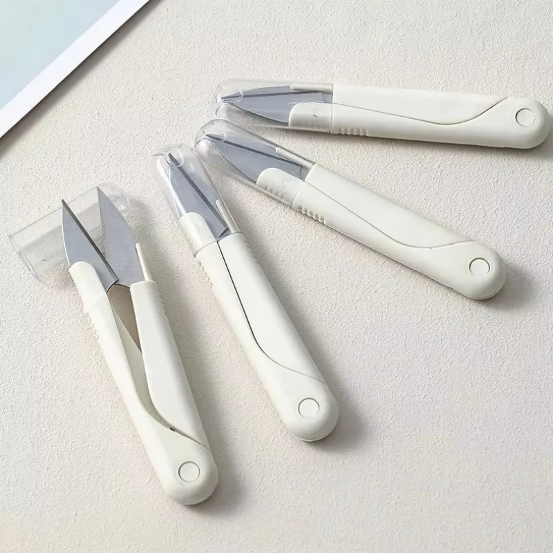 Household U-shaped Spring Scissors with Round Head and Cap for Sewing