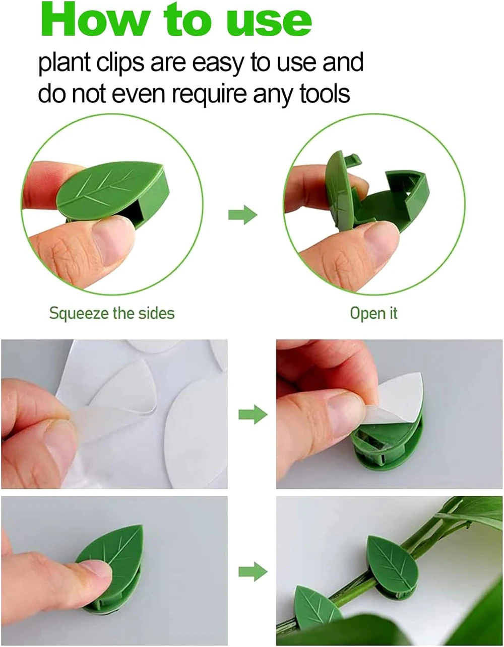 • Easy to install without tools; simply open the clip, insert the vine, and stick it to the wall.