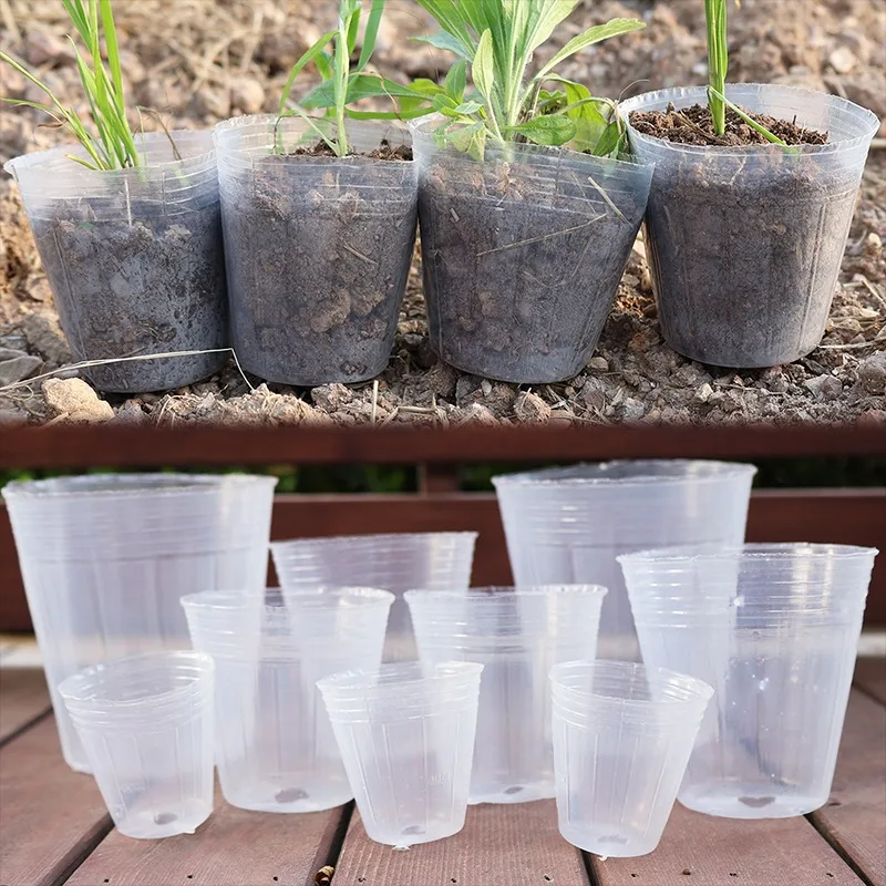 10/50pcs Transparent Nursery Pots with Drainage Hole Seed Starting Pot Flower Plant Container Gardening Planting Nutrition Cups