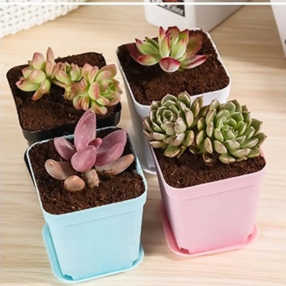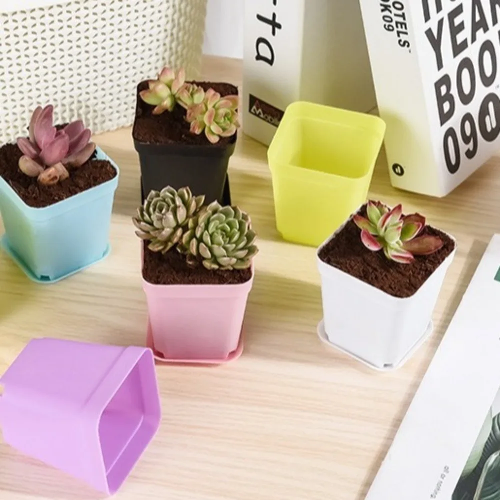 10pcs Mini Colorful Square Plastic Flower Pots for Succulents and Seedlings