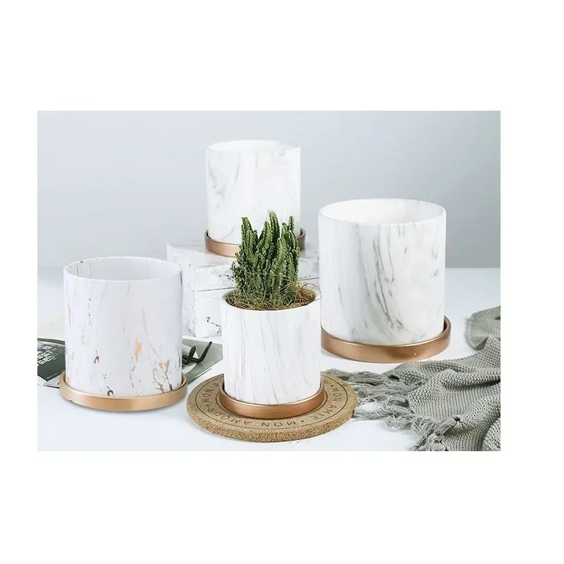 Nordic Ceramic Flower Pots Small Succulent Green Plants Flowerpot with Tray