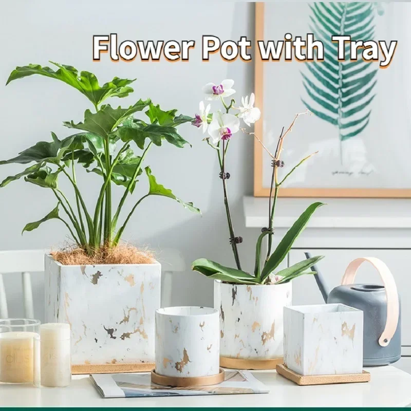 Introducing our Nordic Ceramic Flower Pots, perfect for small succulent and green plants. These stylish pots come with a tray, making them an ideal choice for home desktop decoration and garden supplies.