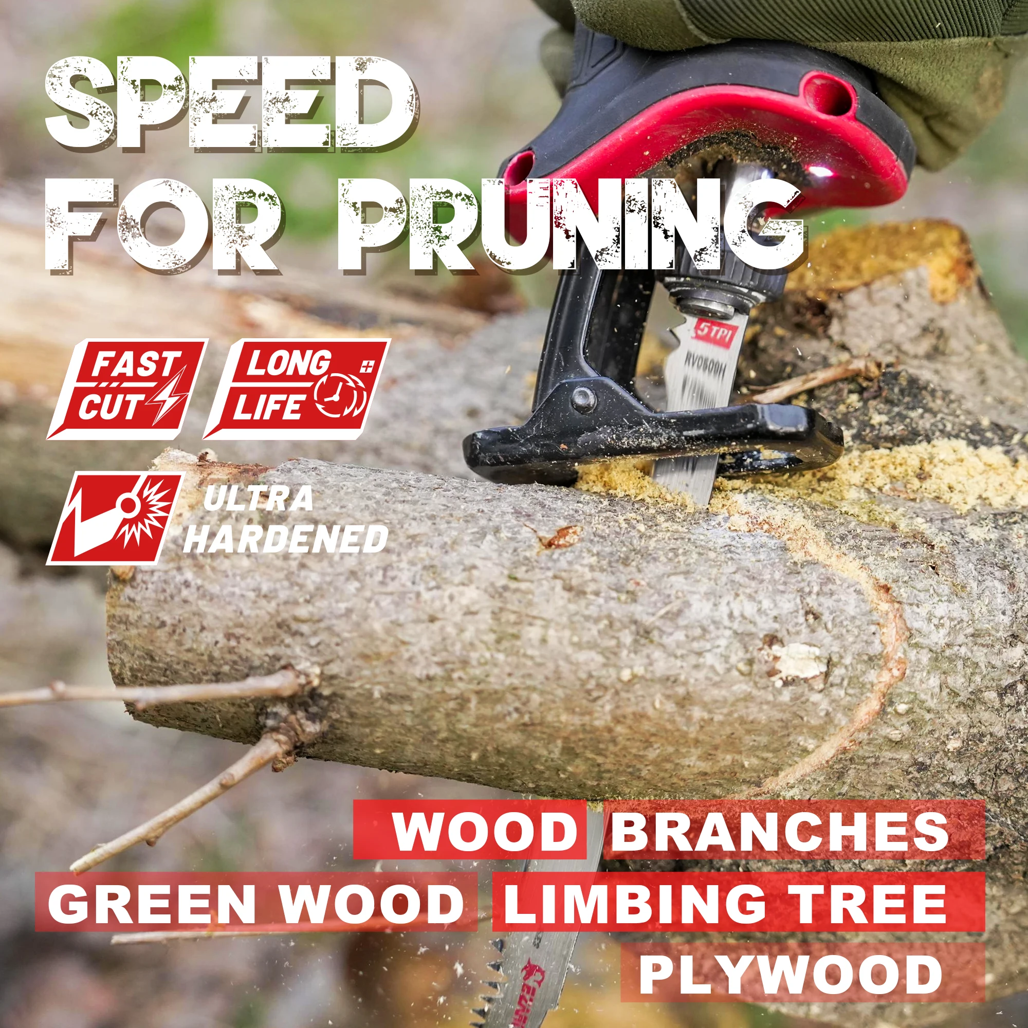 • Effortless Pruning: The 5 TPI design allows for aggressive yet smooth cutting, making it ideal for pruning trees and cutting wet wood.