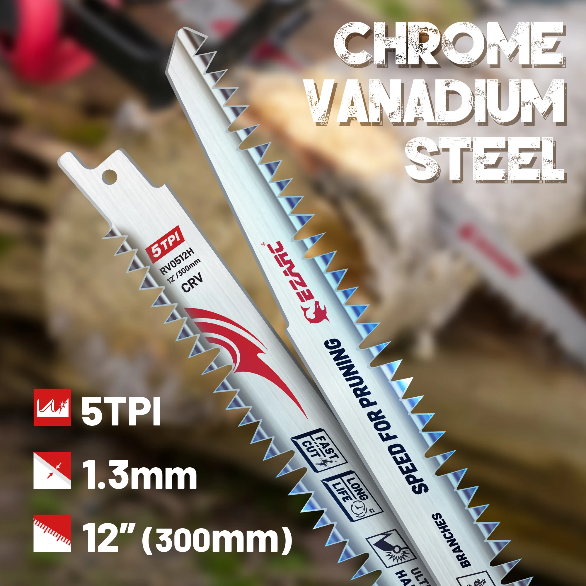 The EZARC 12 Inch Reciprocating Saw Blades are designed for efficient wood pruning and landscaping tasks. Available in packs of 5 or 10, these blades feature a staggered tooth pattern and fleam ground teeth for optimal cutting performance.