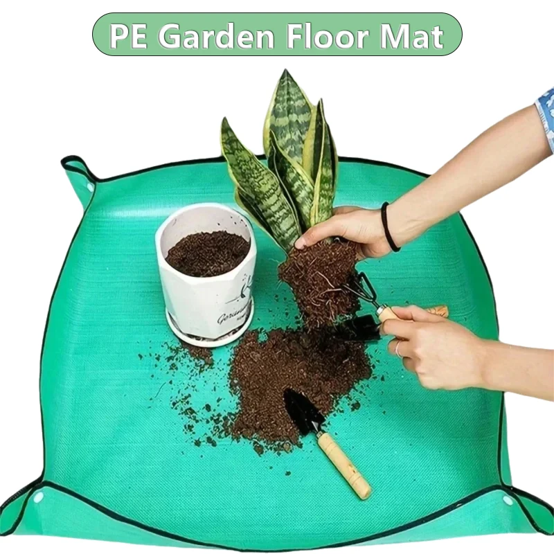 This flower pot transplanting mat is designed for gardening enthusiasts. It is square, foldable, and easy to carry, making it suitable for various gardening tasks.