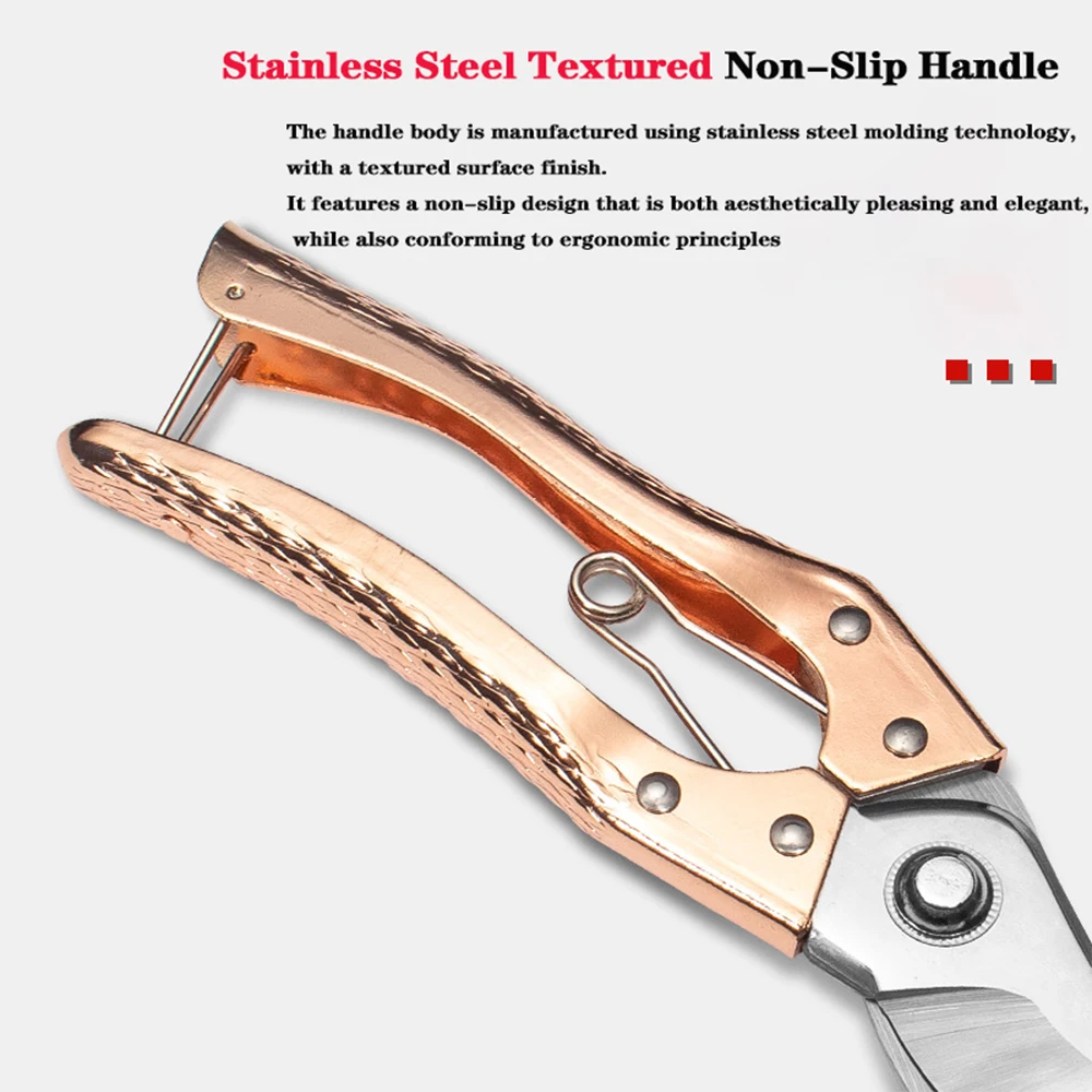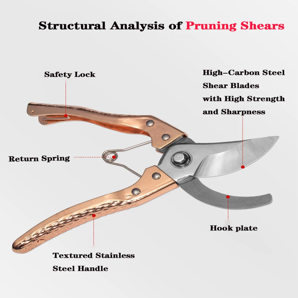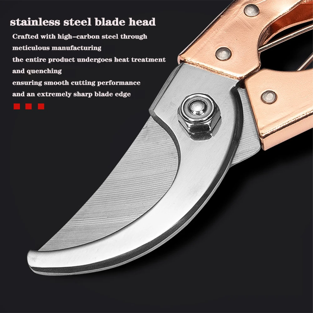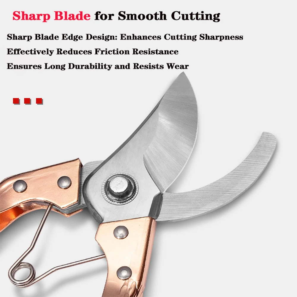 Introducing the Stainless Steel Round Pruning Scissors, designed for heavy-duty use on coarse branches, fruit branches, and sprouts. These garden shears are essential tools for any gardener, providing precision and comfort for all your pruning needs.