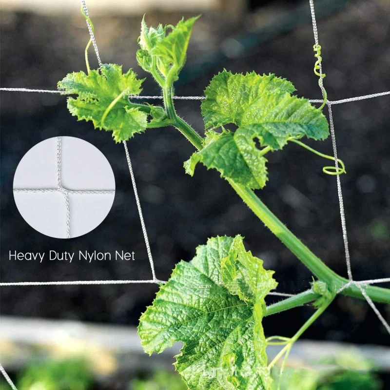 This heavy-duty polyester plant trellis netting is designed to provide strong support for climbing plants such as green beans, peas, cucumbers, tomatoes, and more. It helps keep plants off the ground, reducing the risk of disease and making harvesting easier.