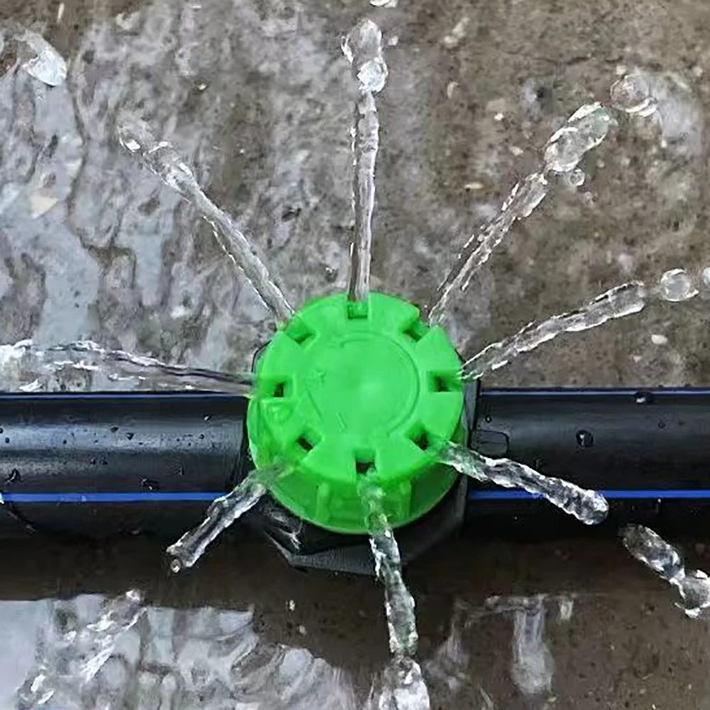 The adjustable 8-hole dripper allows for customizable watering in your garden or greenhouse. It features a simple mechanism to adjust the flow of water, enabling you to sprinkle, drip, or completely shut off the water supply. With a maximum spraying diameter of approximately 1.3 meters, this dripper is versatile for various irrigation needs. It can be easily cleaned if blocked, ensuring reliable performance.
