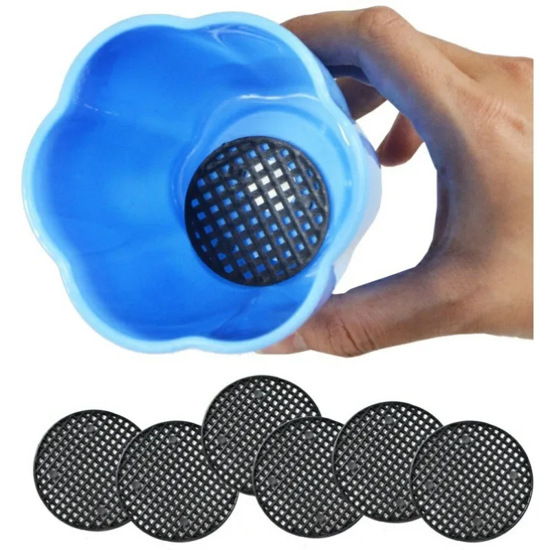 Introducing the 20PCS Flower Pot Hole Mesh Pad, designed for effective drainage and ventilation in your gardening projects. These round mesh pads are perfect for use in bonsai planters and flower pots, ensuring that soil remains in place while allowing excess water to drain away, preventing root rot and promoting healthy plant growth.