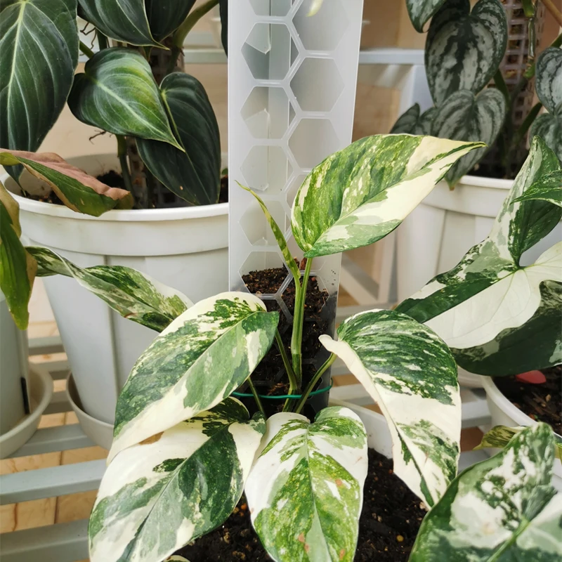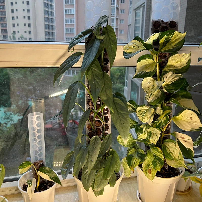 This product includes 2 pieces of adjustable plastic moss poles designed to support climbing plants. These poles help train plants to grow upwards, promoting healthier growth and larger leaves, making them ideal for indoor gardening.