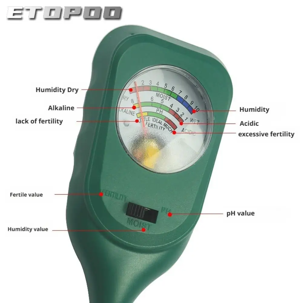 - 3-in-1 multifunctional soil tester for moisture, pH, and fertility.