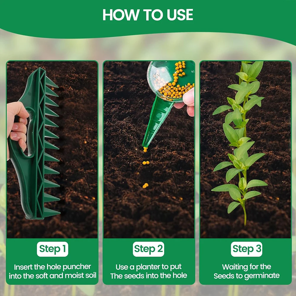 - Easy to use: Loosens the soil in advance and helps check the needed spacing for planting. Use the seedling spacing tool to create neat planting holes.