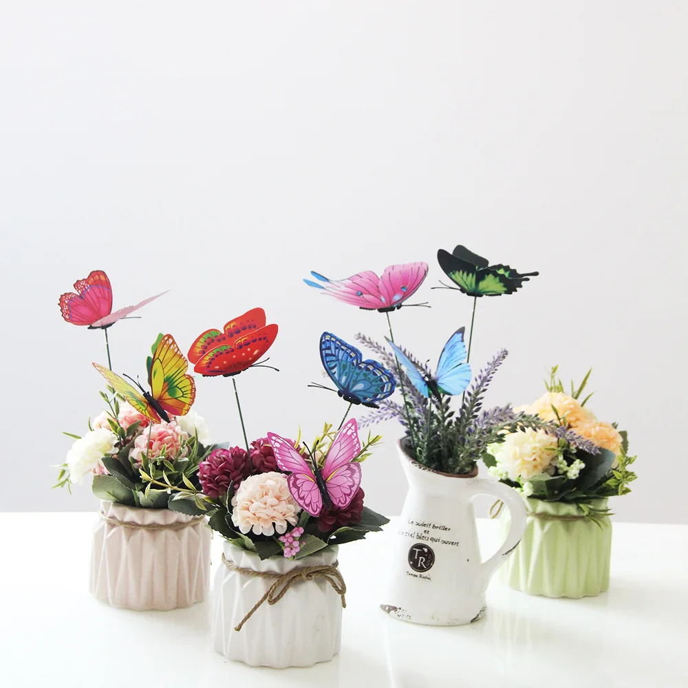 50 to 10Pcs Simulation Colorful Butterfly Stakes for Home Garden Decoration