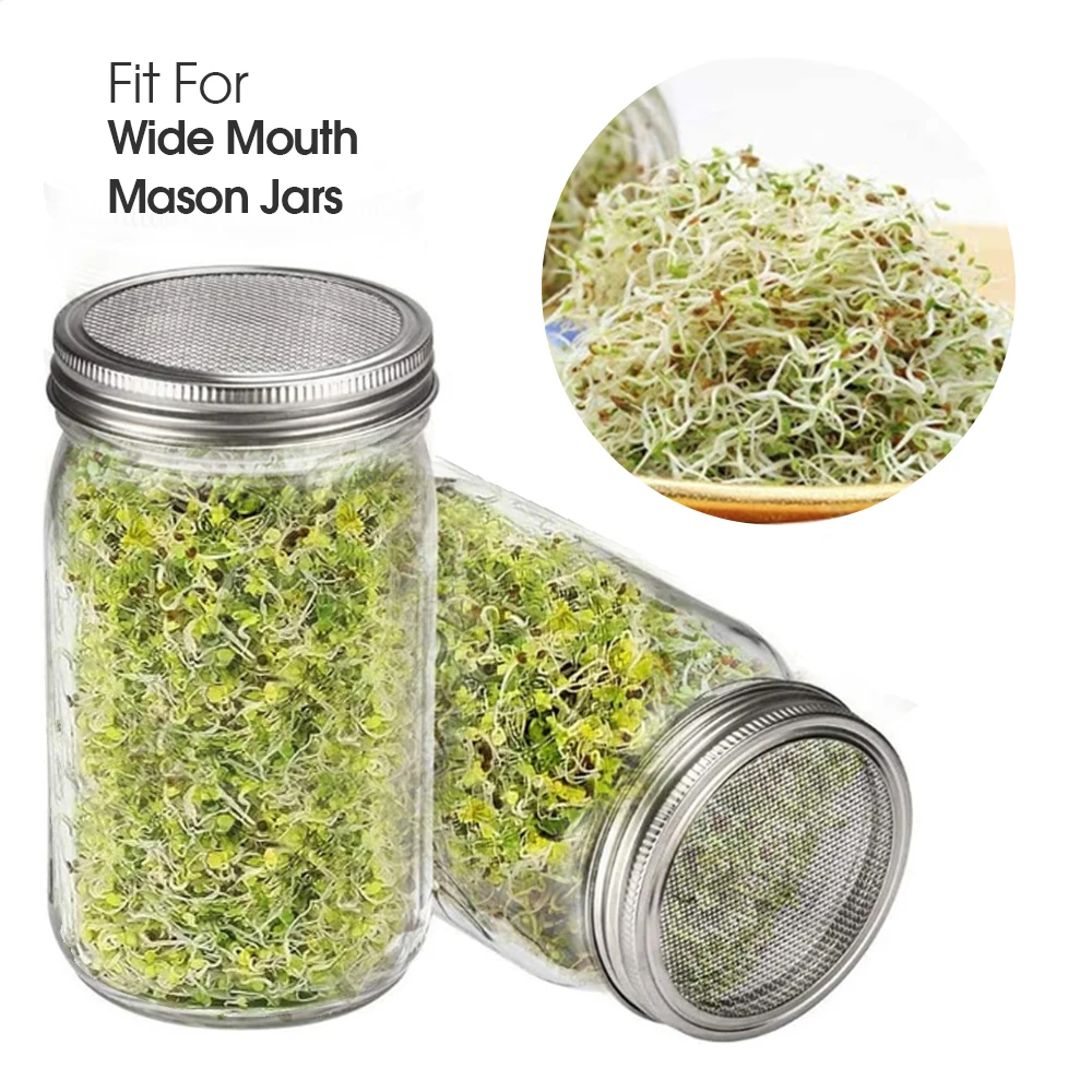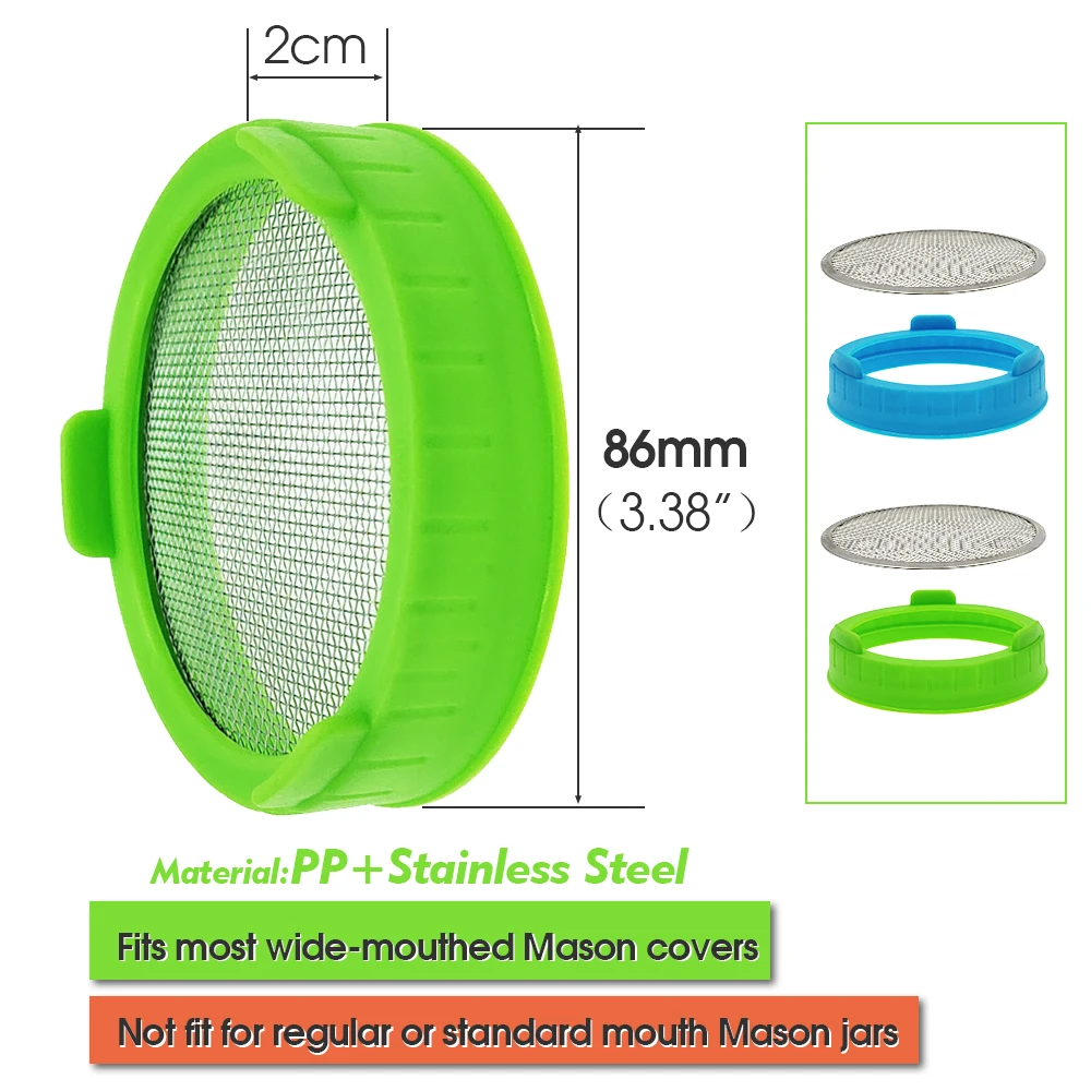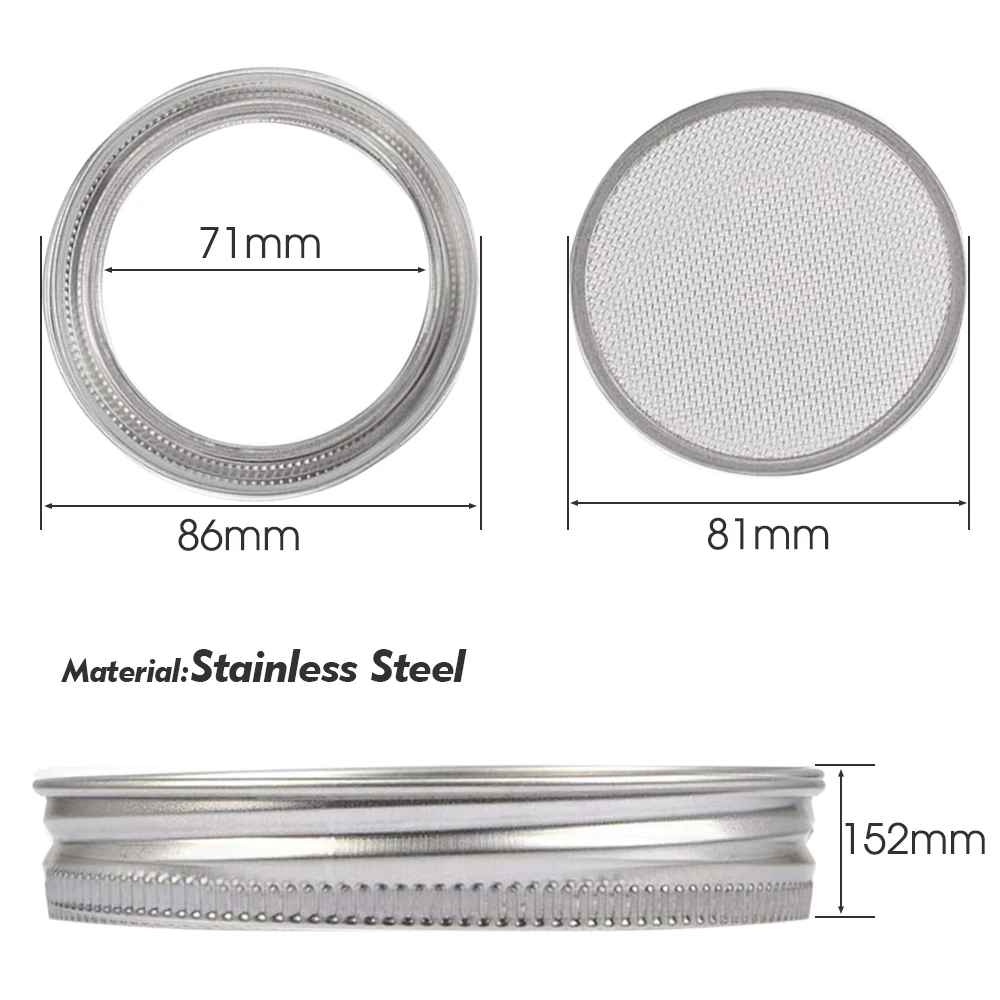 86mm Wide Mouth Sprouting Jar Filter Cap Stainless Steel Screen Seed Germination Kit