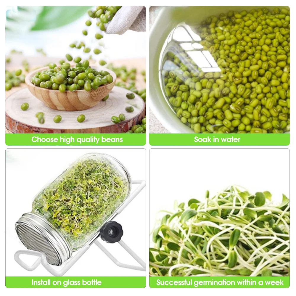 This Seed Germination Lid is designed for easy use with wide mouth Mason jars, allowing for efficient soaking, rinsing, and draining of seeds without the need to unscrew the lid. It helps prevent spills during cleaning and is compatible with 86 mm wide mouth jars, making it ideal for sprouting peas and bean sprouts.