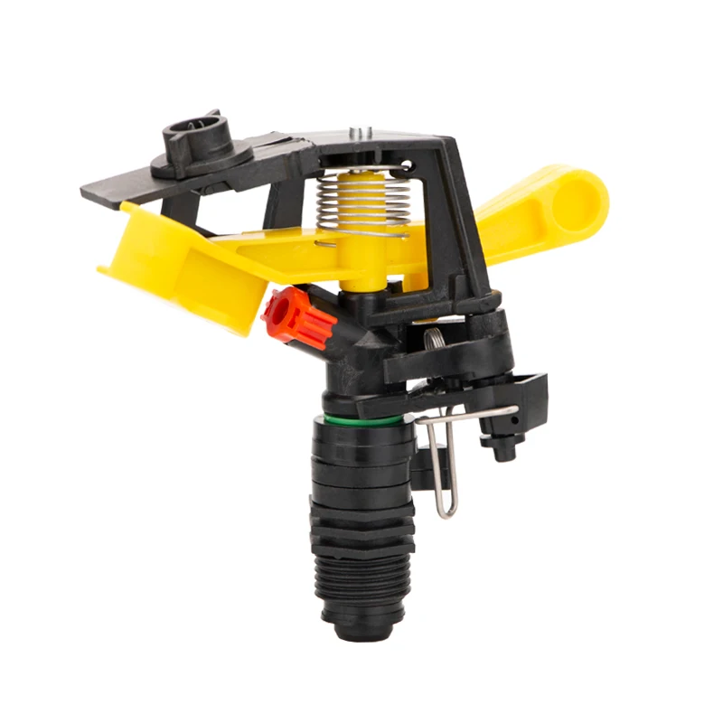 The Adjustable Spiked Rocker Impact Sprinkler is designed for efficient lawn irrigation and garden watering. This versatile sprinkler features a 360-degree rotary jet, making it ideal for various watering needs in agricultural settings.