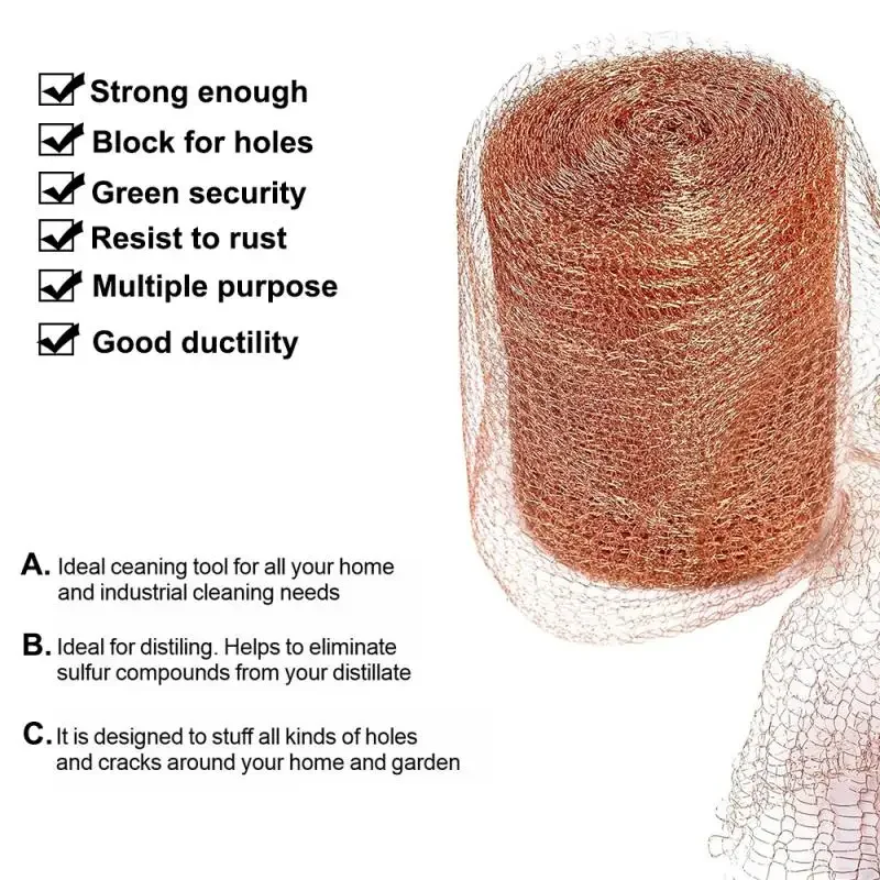 - Material: Pure copper with a knitted construction, making it resistant to gnawing by birds.