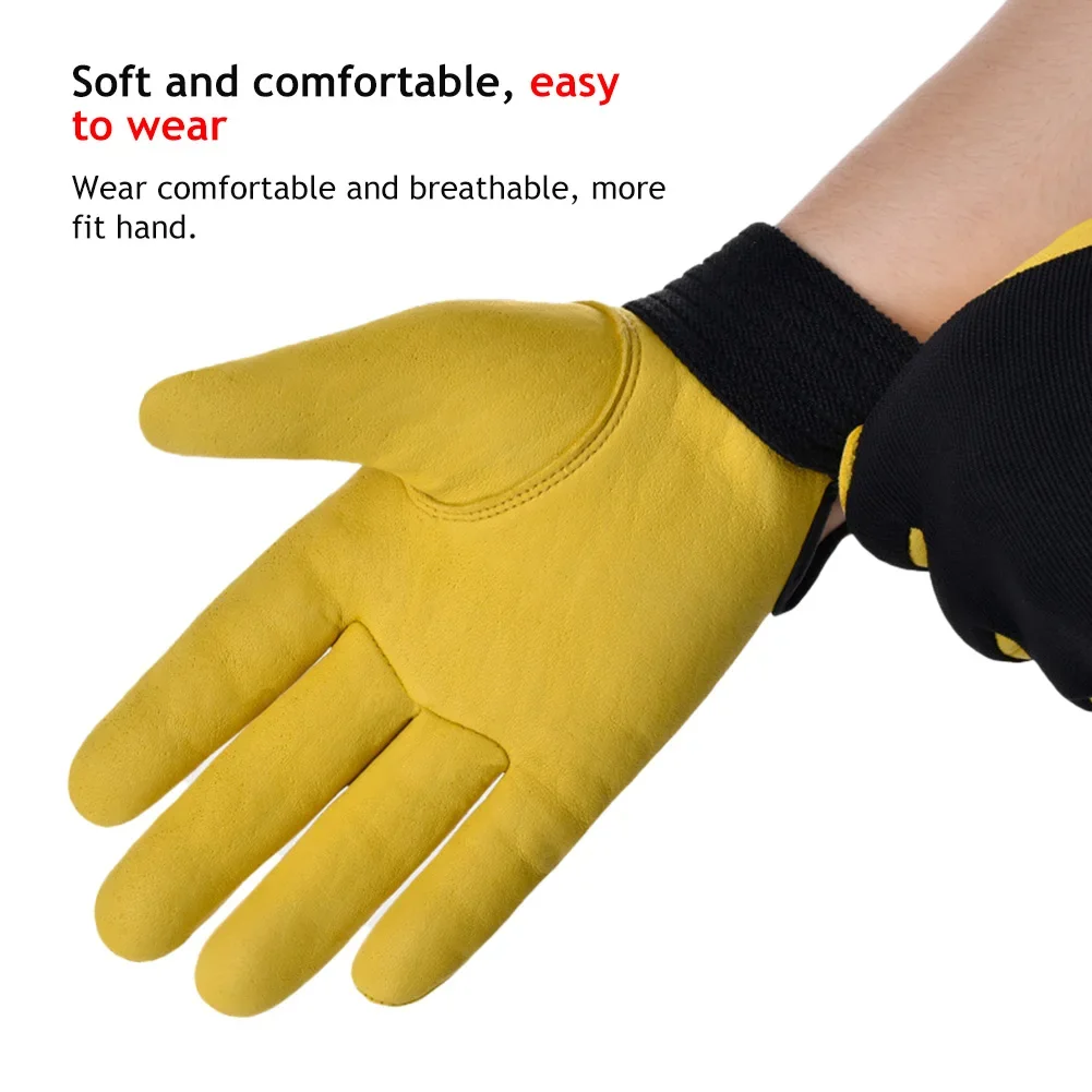 Cowhide Leather Work Gloves are designed for safety and protection in various labor-intensive tasks. These gloves are ideal for gardening, motorcycle riding, welding, and other demanding activities, providing durability and comfort for workers.