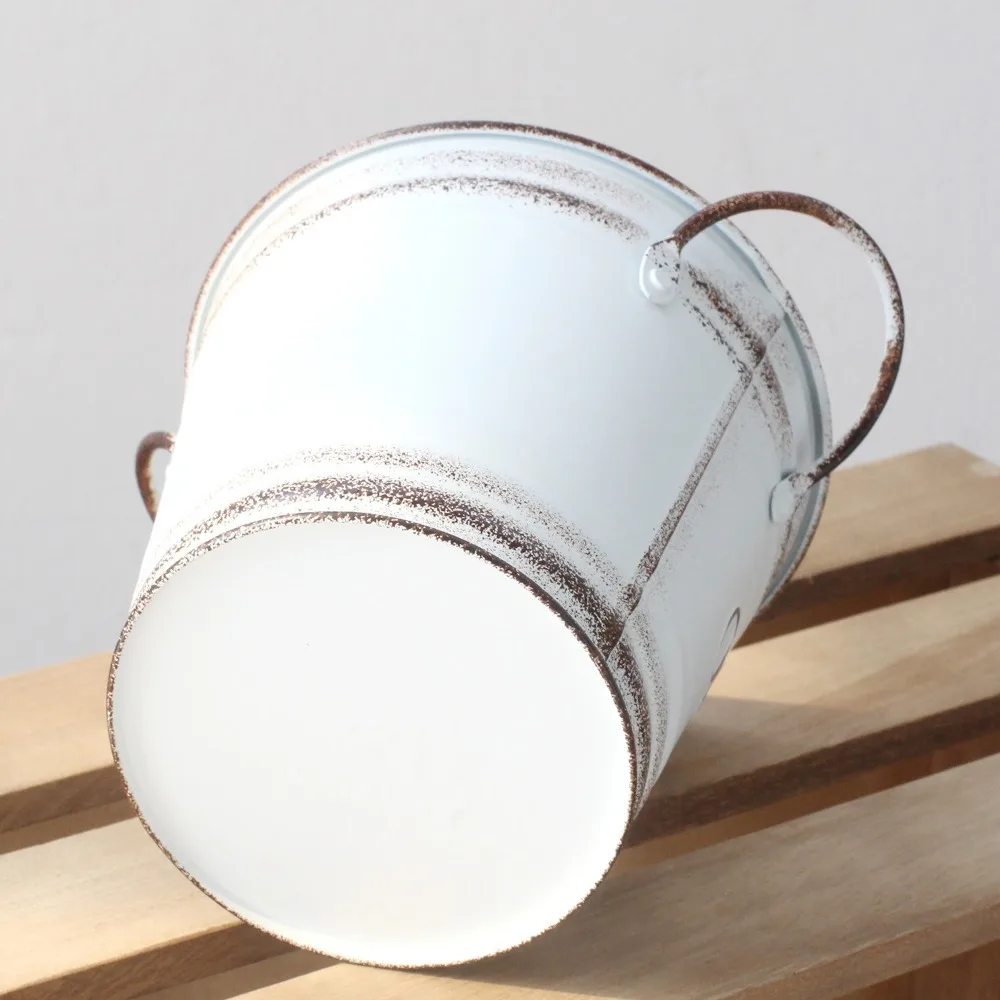 Creative Retro Iron Flower Pot Convenient Durable Metal Flower Container with Handle Round Floral Buckets Garden