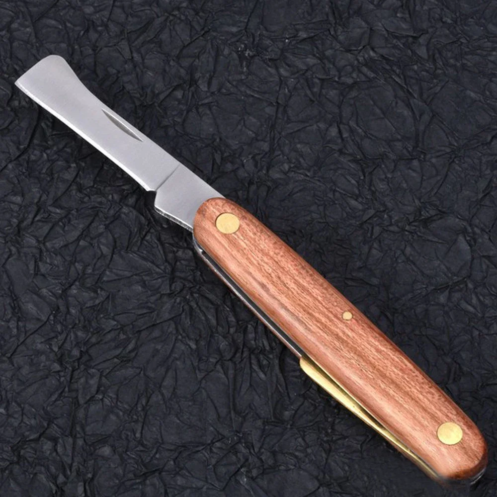 This professional garden grafting knife is designed for various gardening tasks including pruning, digging, and cutting. It features a sharp stainless steel blade and a comfortable wooden handle, making it an essential tool for any gardener.