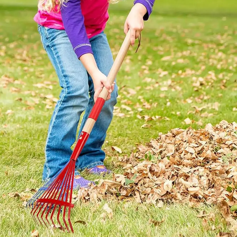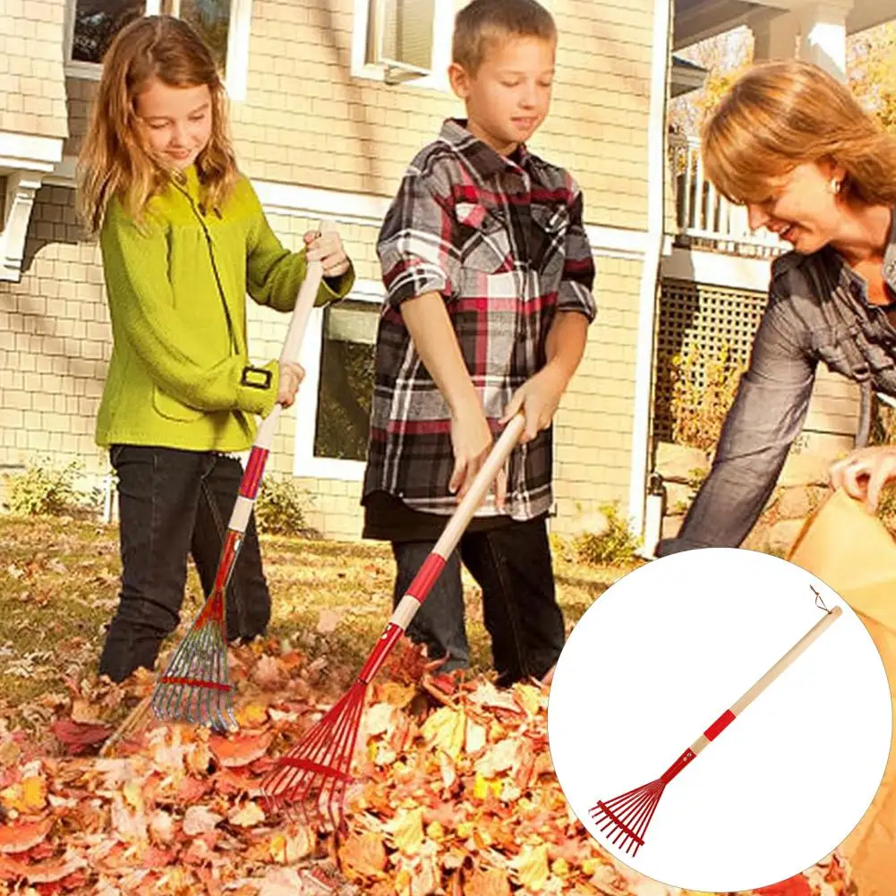Kids Rake Hardwood Handle Lightweight Garden Lawn Rake for Children
