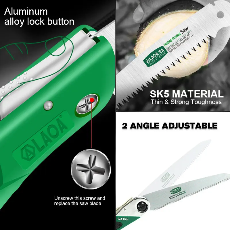 The LAOA Garden Saw Pruner is a versatile and efficient tool designed for pruning and cutting tasks in gardening and woodworking. This foldable saw features sharp teeth for effective cutting and is suitable for various applications, including camping and DIY projects.