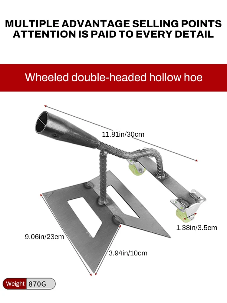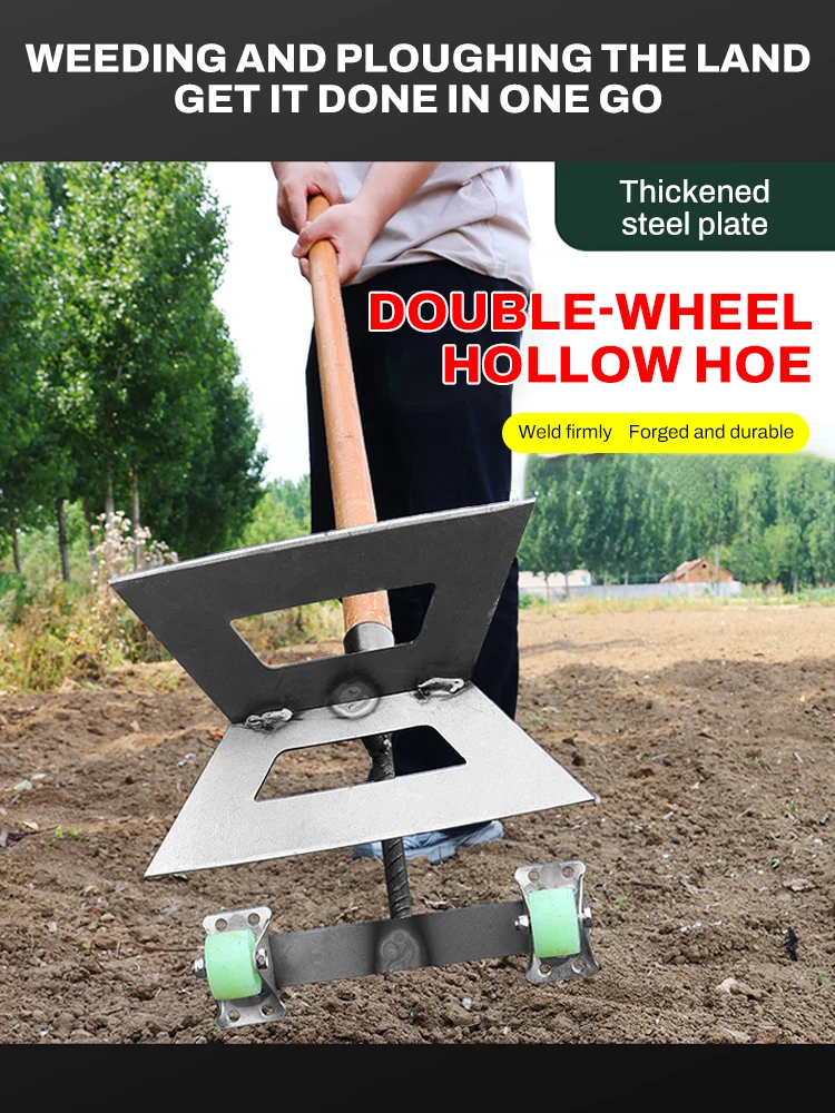 The Manual Push Weeding Head Dual-Head Wheeled Hoe is an essential gardening tool designed for effective weeding and soil loosening. Made from high-quality manganese steel, this durable weeder is perfect for various gardening tasks including pruning, digging, and aerating.