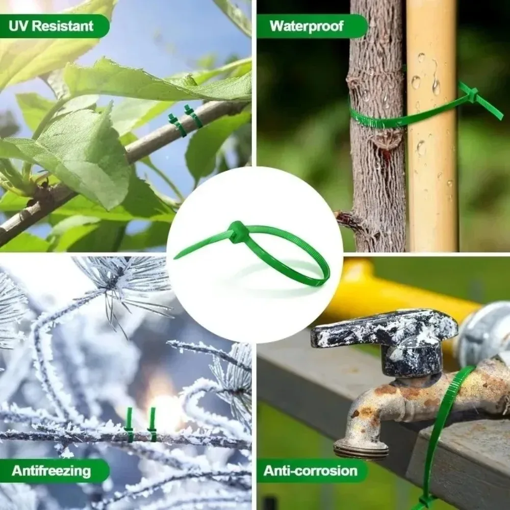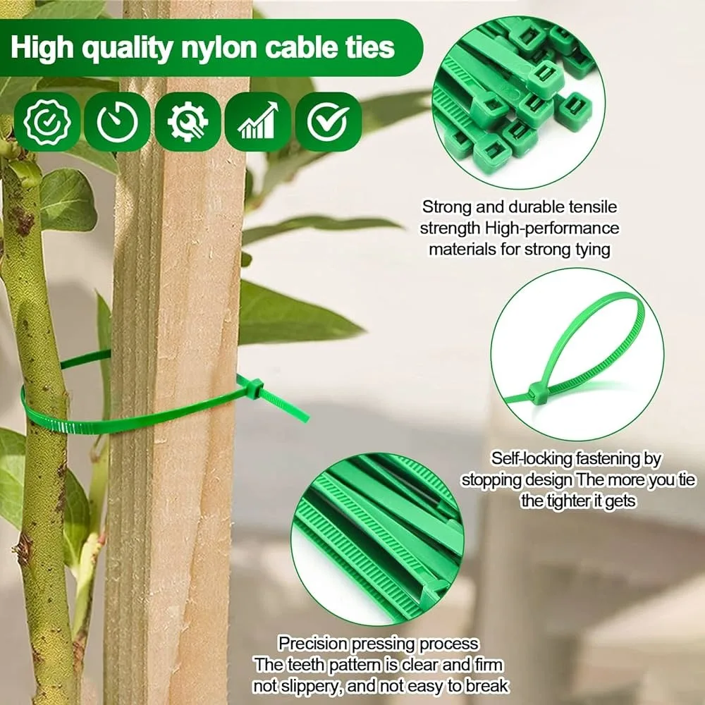 These multifunctional green nylon cable ties are designed for various applications, including bundling cables and supporting plants. They feature a self-locking mechanism for secure fastening and are available in multiple sizes to suit your needs.