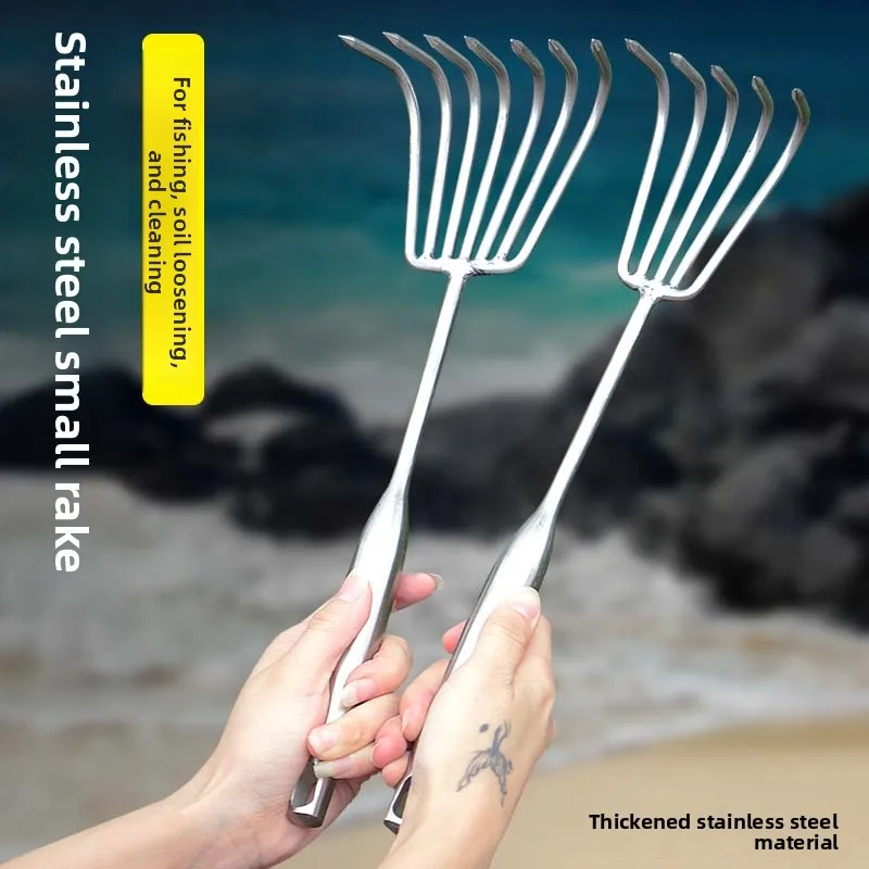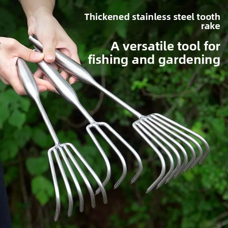 Stainless Steel Welded Handle Small Rake Garden Multi-Claw Loosen Soil Tool