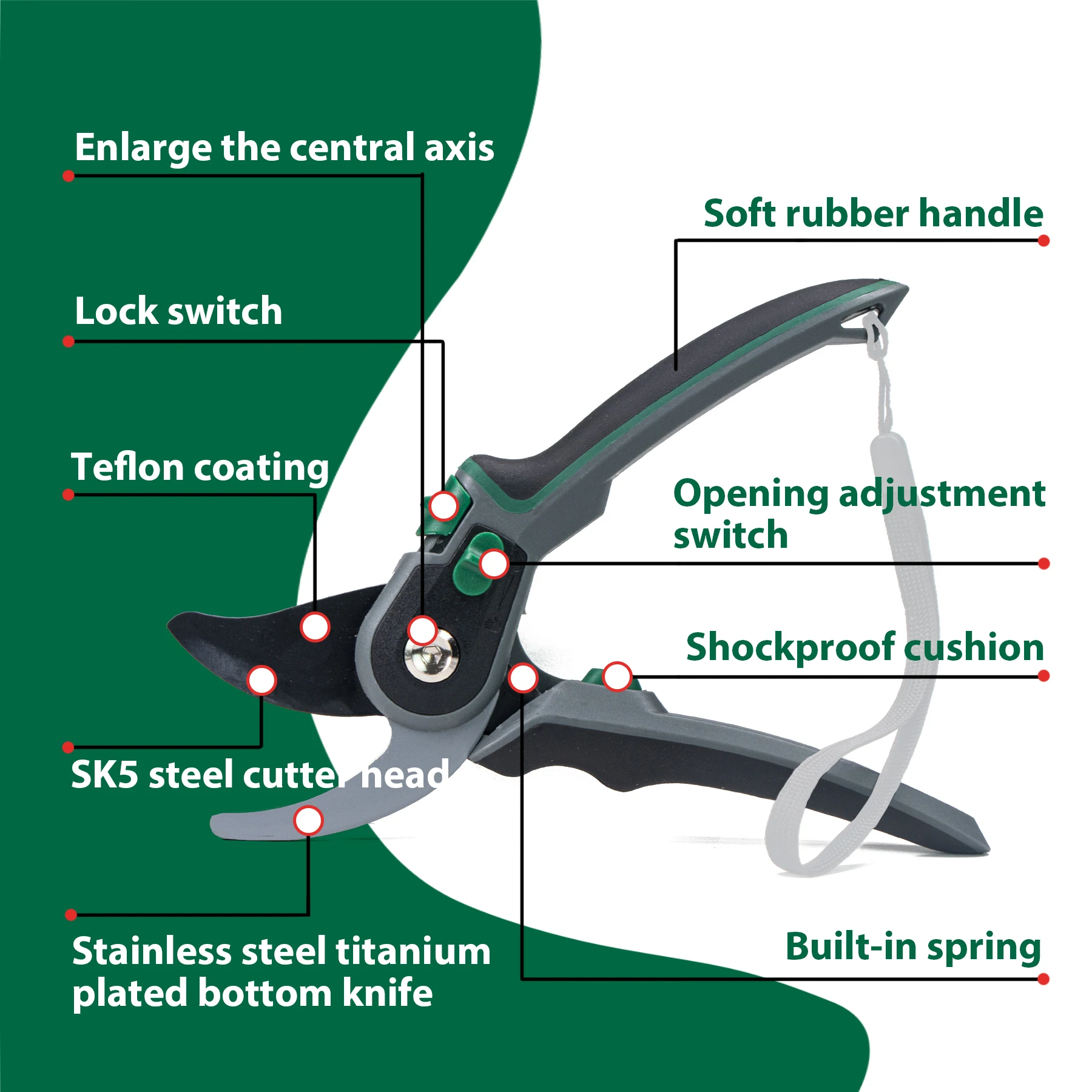The TOVIA 8 Inch Garden Pruner Shears are essential tools for any gardening enthusiast. Designed for precision and ease of use, these pruning scissors feature SK5 titanium-plated steel blades that ensure sharpness and durability. The ergonomic TPR wrapped rubber handle provides a comfortable grip, making it easy to trim branches, flowers, and vegetables without excessive effort. With adjustable handle width, these shears can accommodate various hand sizes and branch thicknesses, making them versatile for all your gardening needs.