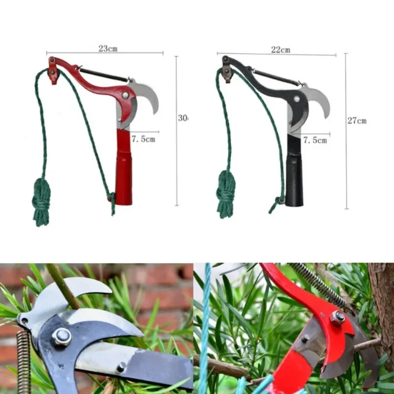 This high-altitude pruning scissors is designed for easy and efficient trimming of high branches without the need for a ladder. With its innovative pulley design and sharp blades, it makes cutting branches a breeze, ensuring a clean and precise cut every time.