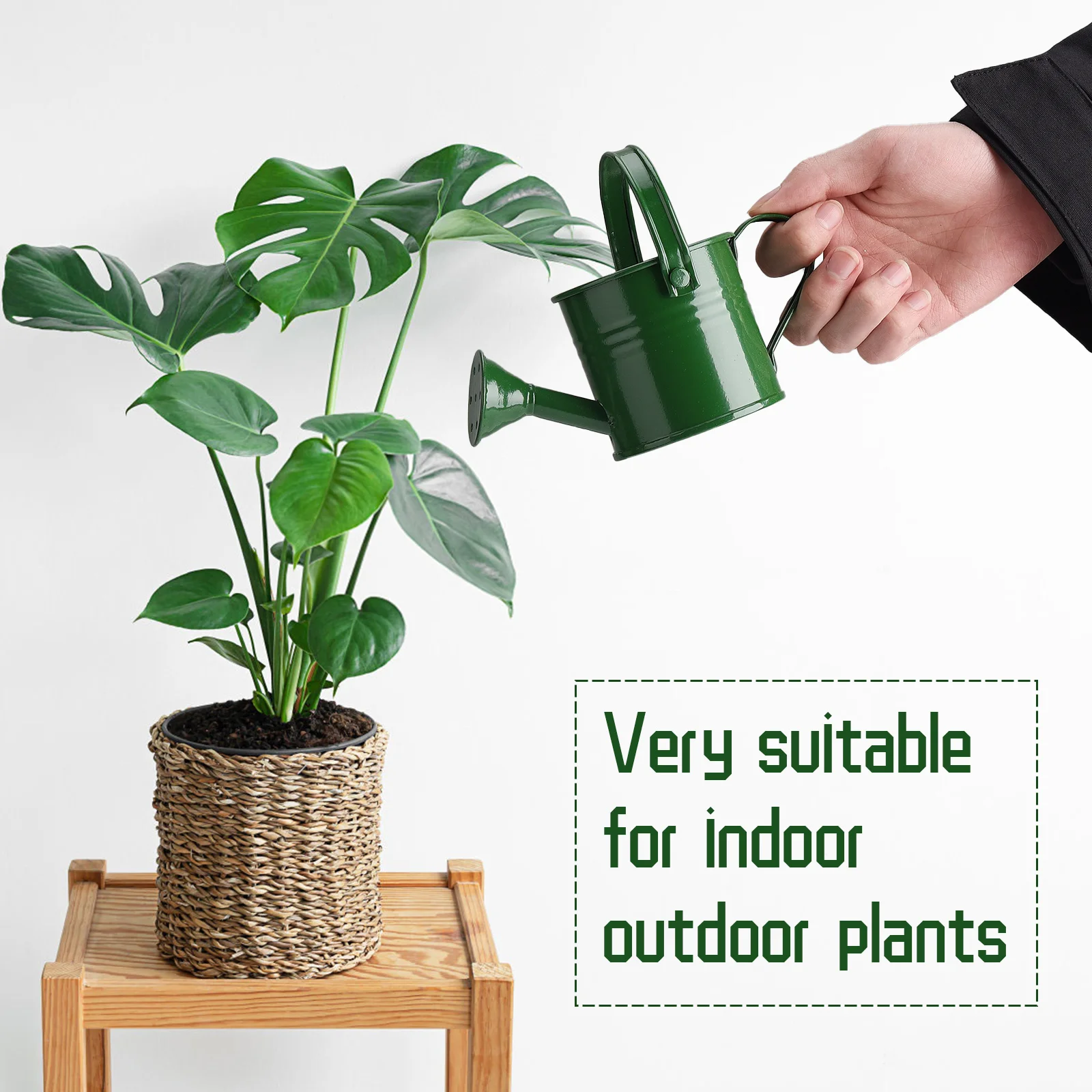 This portable tin watering can is designed for both indoor and outdoor gardening. With its stylish wrought iron construction and comfortable handle, it is perfect for watering and irrigation tasks, ensuring your plants receive the care they need.