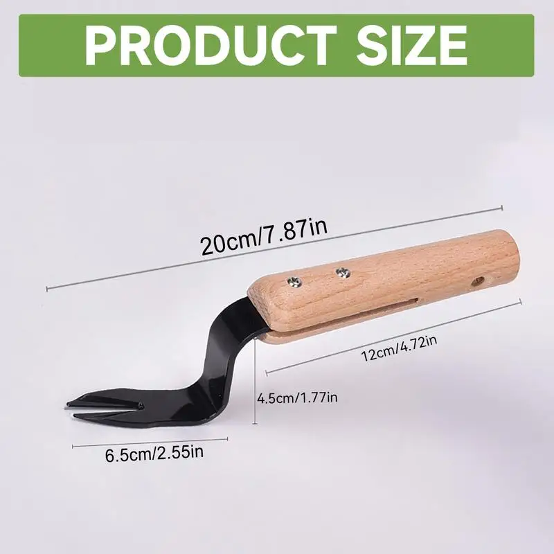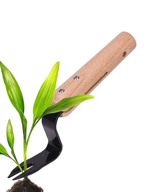 Weeding Fork with Wooden Comfortable Grip Handle Manual Steel Weeding Tool